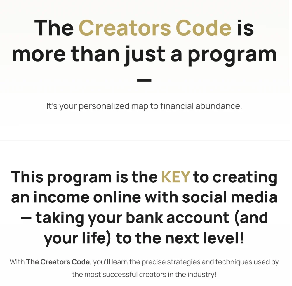 The Creator's Co. and The Wealth Creator program make no guarantee of specific financial outcomes or income results. Earnings and income representations are aspirational examples only and should not be interpreted as typical results. Success with The Wealth Creator depends on numerous factors including effort, skills, and marketplace conditions, which vary among individuals. Any testimonials or examples used are exceptional results, which do not apply to the average participant and are not intended to represent or guarantee that anyone will achieve the same or similar results.